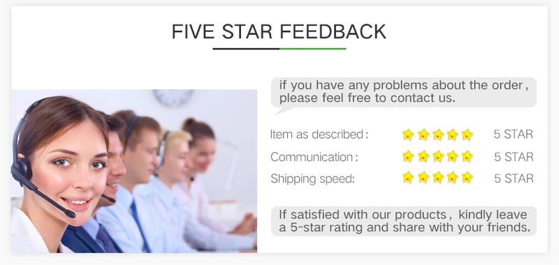 1) お客様の満足と肯定的なフィードバックは私たちにとって非常に重要です。 私たちの商品とサービスに満足しているならば、肯定的なフィードバックと5つ星を残してください。