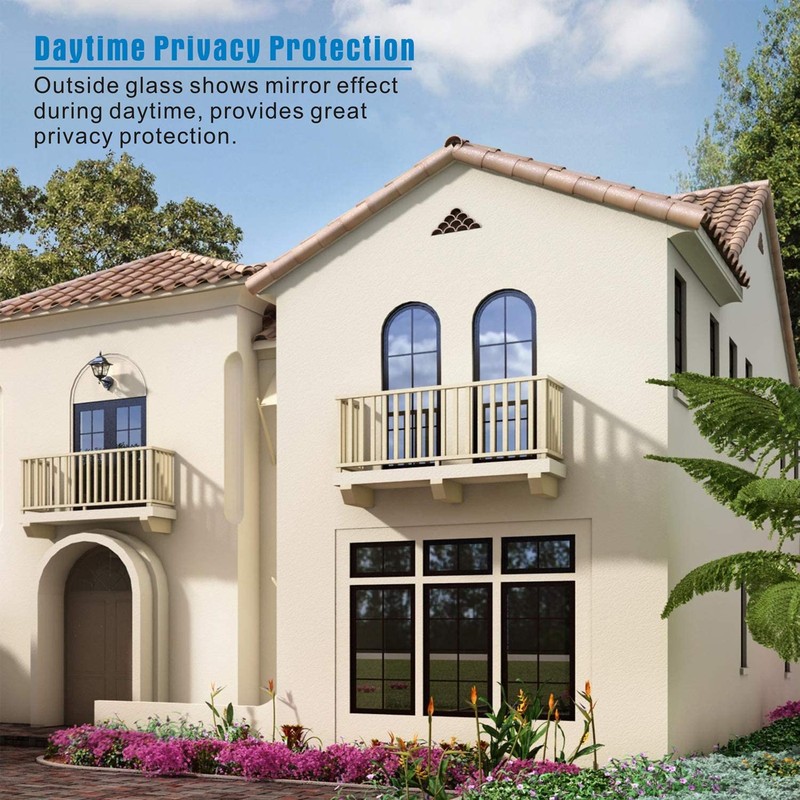 ⭐プライバシー保護-ウィンドウフィルムのプライバシーに注意してください。昼と夜の間でプライバシー効果は異なります。 一方向ウィンドウフィルムは昼間のみ優れたプライバシーを提供し、外側のガラスはミラー効果を示します。 外の光が暗くなると、外のガラスの鏡効果は徐々に消え、外の人は中を見ることができます。 内側の光が外側よりも強い場合、ミラー効果は逆になります。 夜間は必ずカーテンを描いてください。