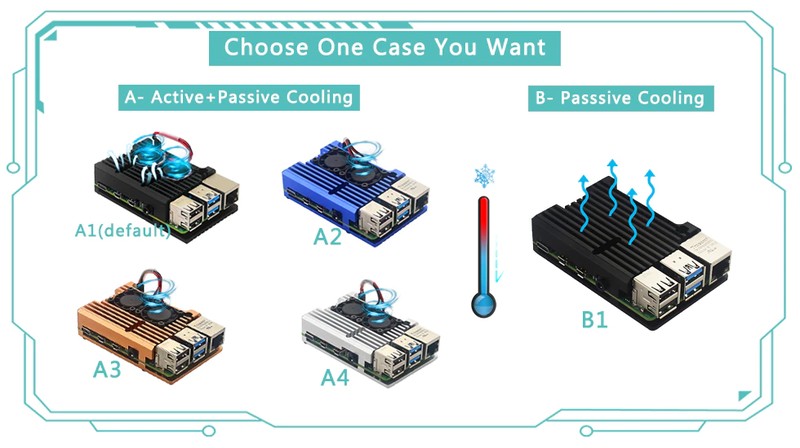 Raspberry pi 4のパフォーマンスが大幅に向上したため、熱放散がより重要になります。 そのため、このraspberry pi 4セットにデュアルスーパークーリングファンアルミニウムケースを提供します。 このケースを使用するときに熱放散を心配する必要はありません。 超薄型デザインも人気です。 ファンモジュールがお好きでない場合は、ファンなしのアルミケースもご用意しています。