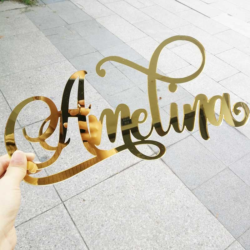 パーソナライズされたアクリルカット名サイン結婚式の誕生日パーティーの装飾ミラーゴールドカスタム名壁掛けパーティーギフト用品
