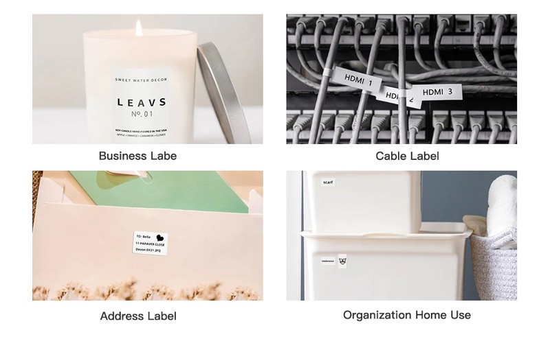 38ミリメートル * 25ミリメートル + 30ミリメートル (130ラベル1ロール) 45ミリメートル * 30ミリメートル + 40ミリメートル (110ラベル1ロール)