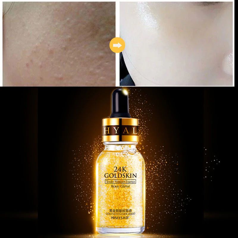 24 18kゴールドエッセンス代謝を促進すること、明るくと遅延老衰による平滑しわ、また、提供保湿エッセンス和お肌その粘着性、作成優れたメイクアップ効果。