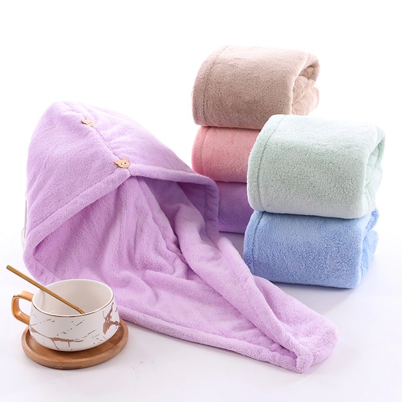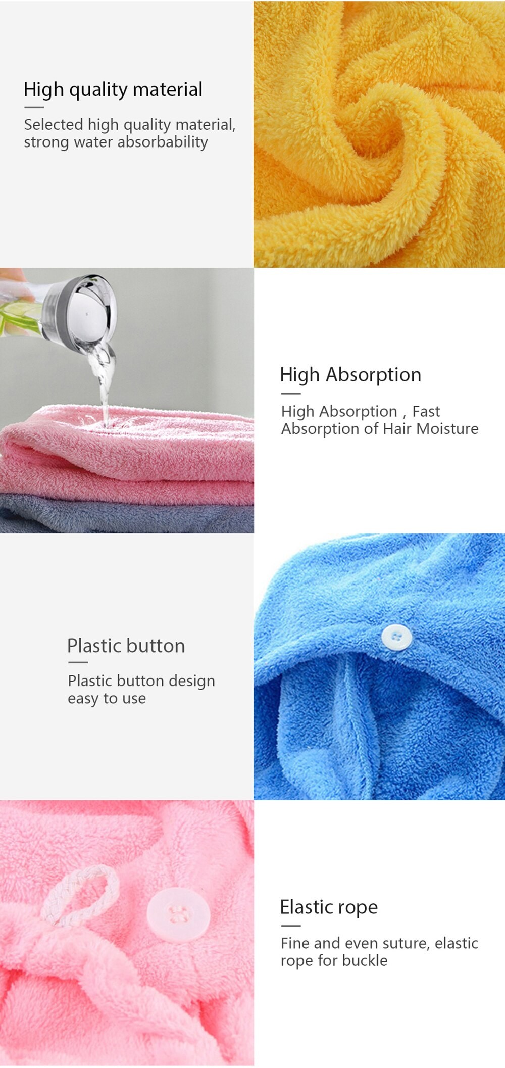 髪を洗った後、タオルで包み、ボタンで固定します。 ヘアタオルが滑り落ちないことを確信でき、良い髪の日で朝を始めることができます!