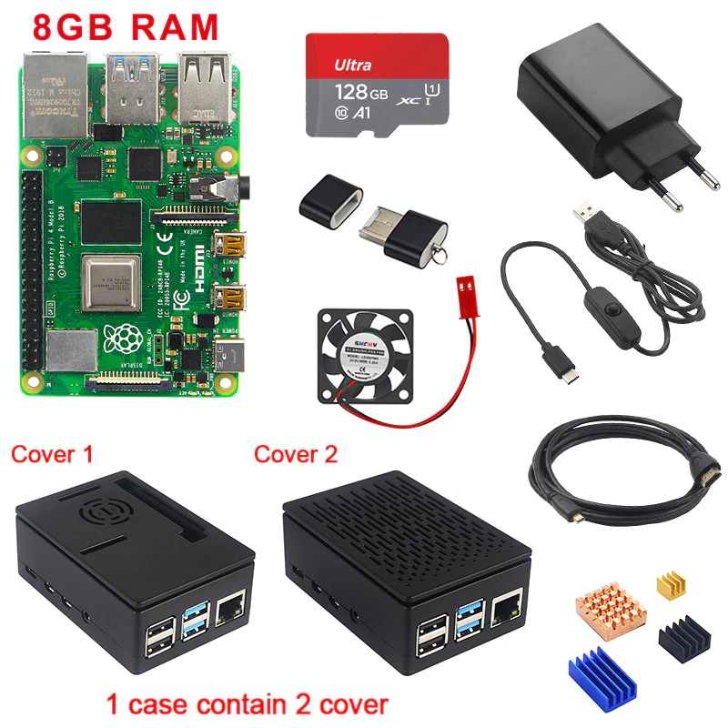 Raspberry Pi 4,8GB,4GB,2GB,32 GB,64 GB,128 GB,ケース,カードリーダー,ヒートシンク付きキット