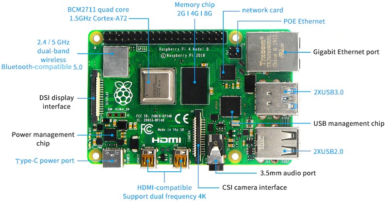 1.broadcom bcm2711、クアッドコアCortex-A72 (arm v8) 64ビットsoc @ 1.5ghz
