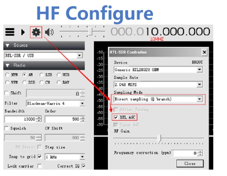 すべてのhfアマチュアバンドをカバーします。 24-1766mhzのvhfおよびuhfバンドをカバーします。 最大3.2 mのサンプリングレート (〜2.8 mhz安定)。 受信機モードam、nfm、fm、dsb、usb、lsb、cw Hf短波q分岐直接サンプリング。