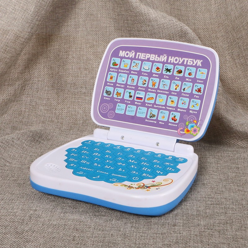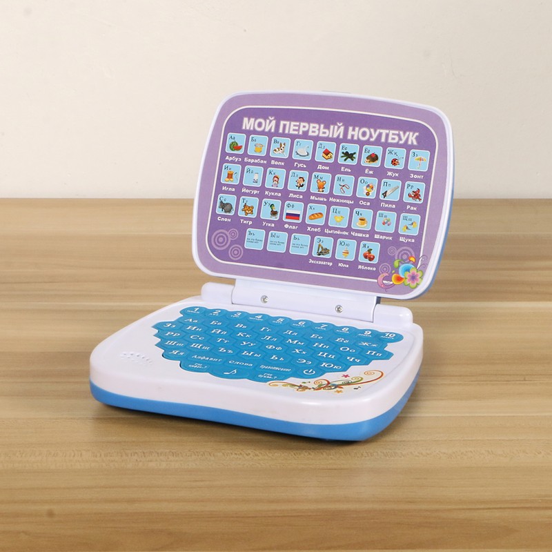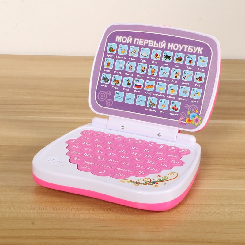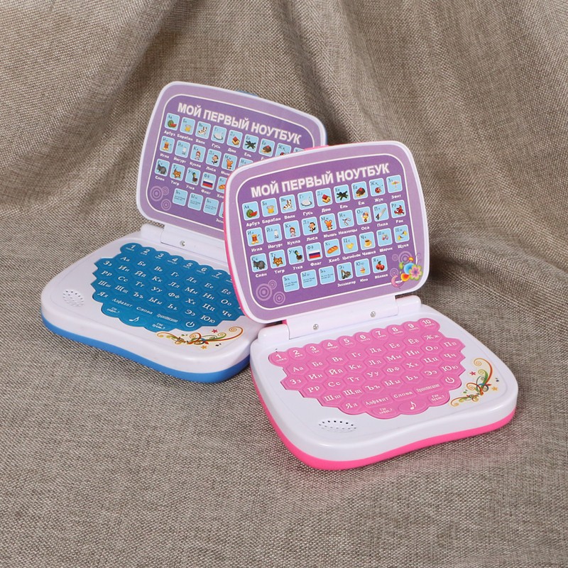ロシア語学習マシンミニコンピューターアルファベットの発音、子供たちの学習、教育用ラップトップおもちゃピンク & ブルー