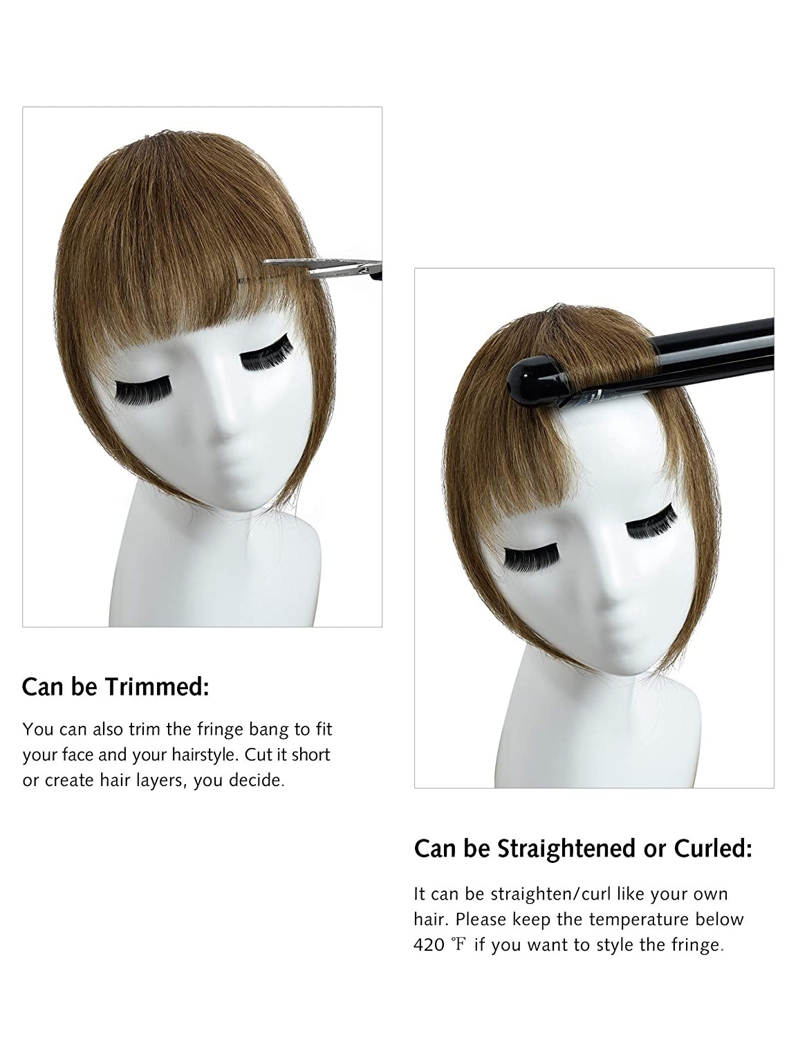 楕円形、ハート型、正方形、円形または長い顔などに適しています。また、顔や髪型に合わせて、好きな長さにフリンジをカットできます。