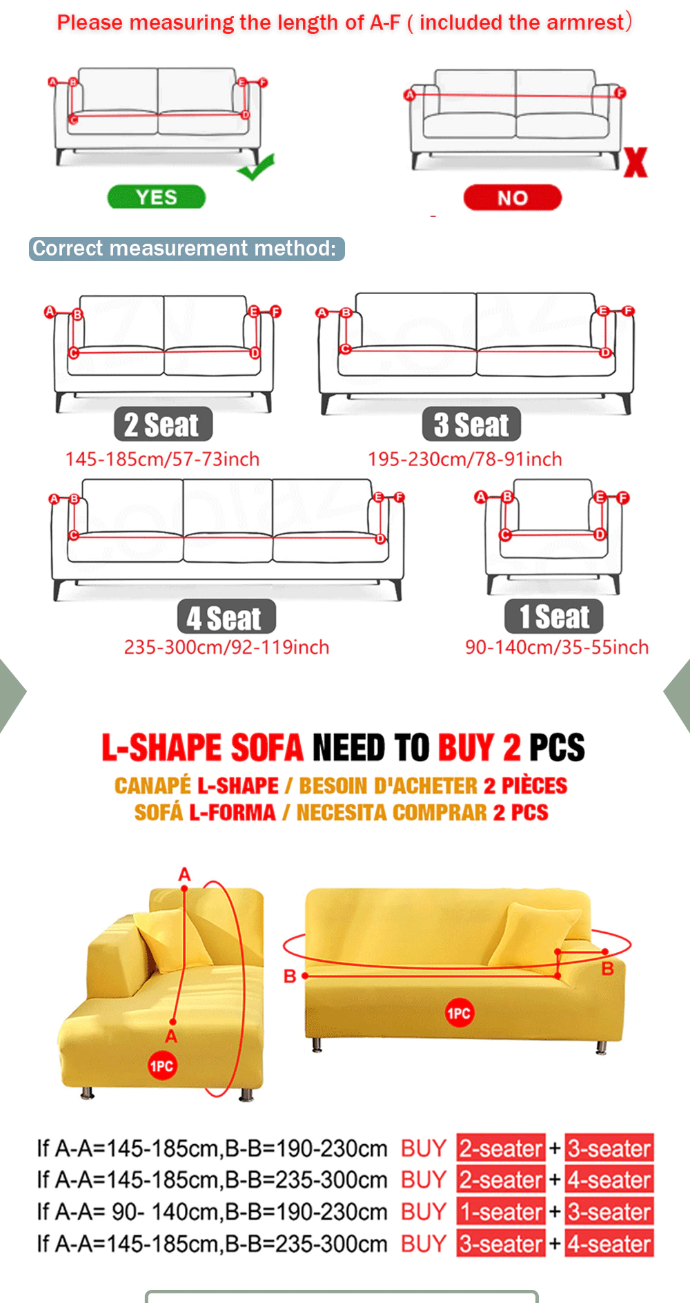2.アームレスト付きソファを測定してからサイズを選択してください。測定しない場合、ソファのカバーはソファよりも小さくなります。