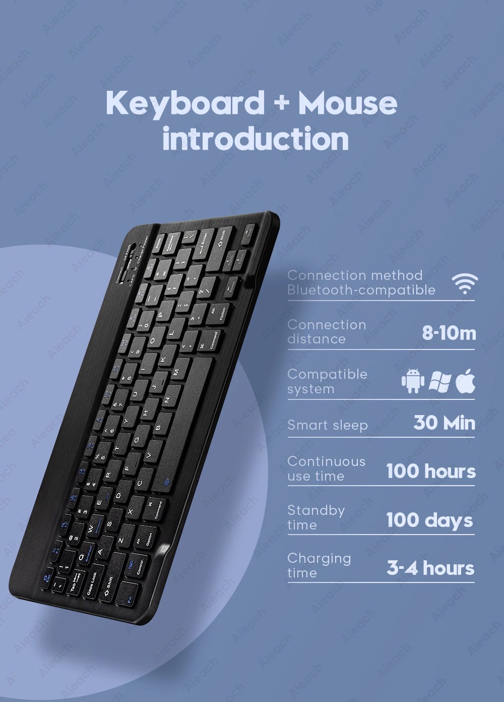 モデル番号:ワイヤレスBluetoothタブレットキーボードマウス
