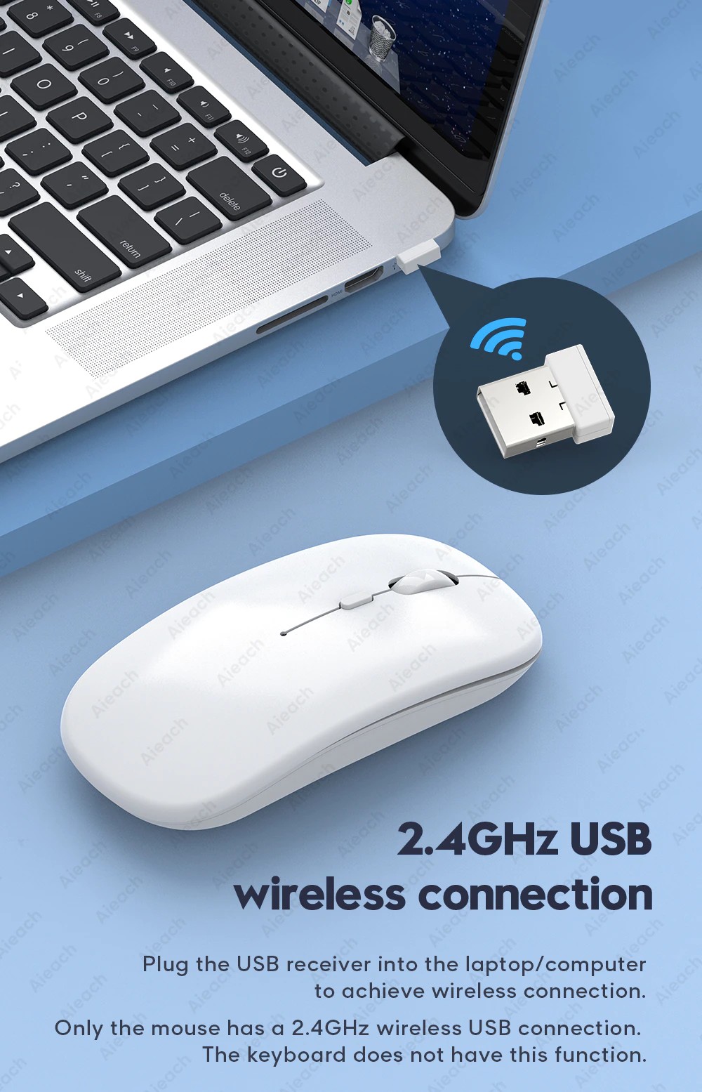USBレシーバーをラップトップ/コンピューターに接続してワイヤレス接続を実現します。(マウスのみ)