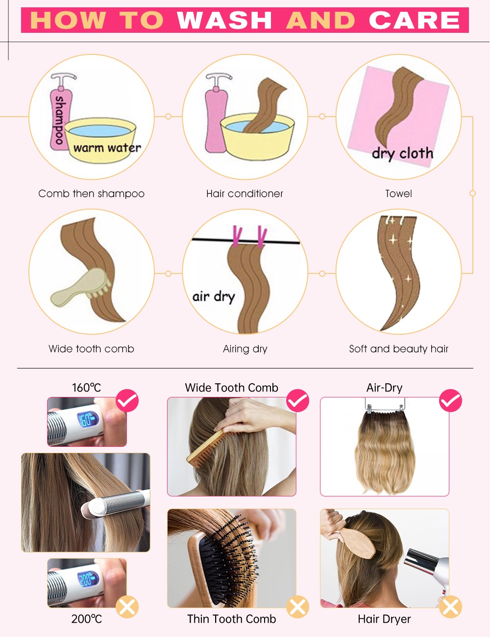 6.髪を空気乾燥させることを推奨します。このプロセスにより、エクステンションの寿命が延長されます。