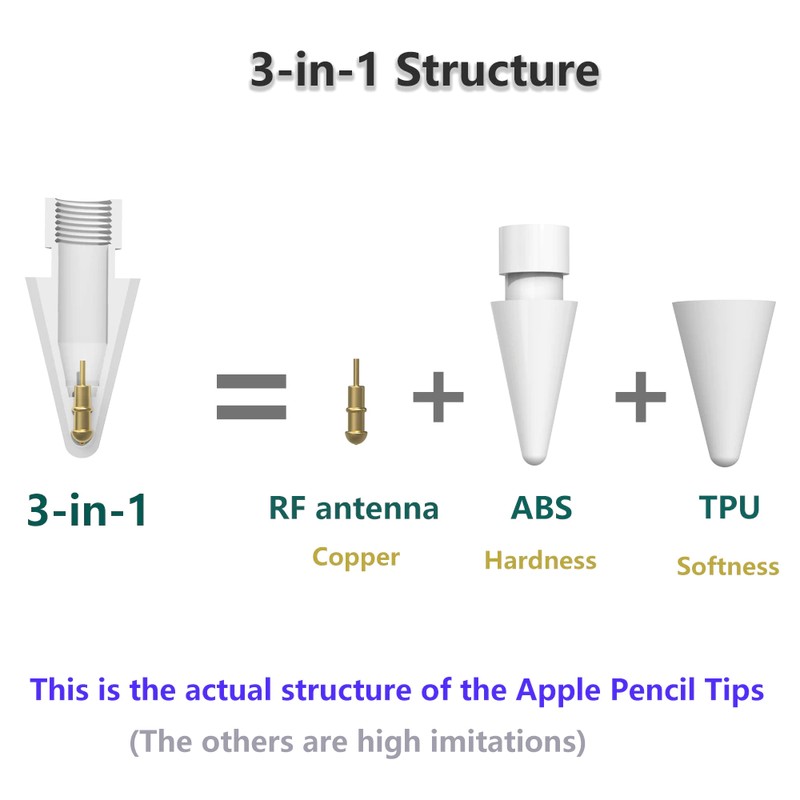 Appleの公式ペン先: 2層設計で、内側の層はabs素材で作られ、外側の層はtpe素材で作られています。
