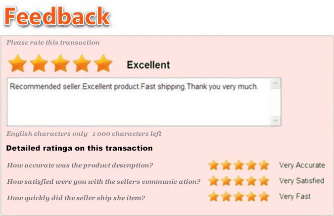 あなたは満足当社の製品とサービスについて、肯定的なフィードバックを残してください &5スターレビュー。