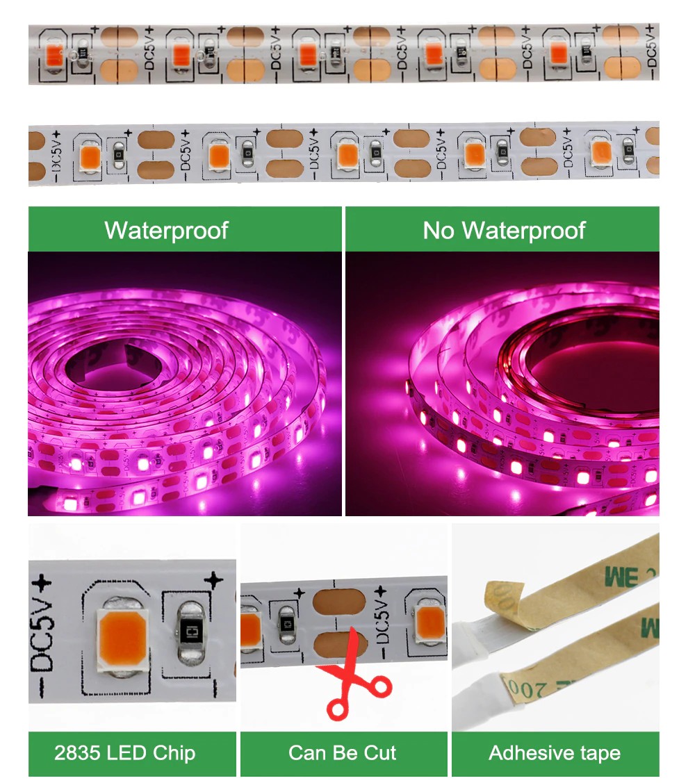 Usb 光フルスペクトル 5 12v led ストリップフィトランプ 2835 0.5 メートル 1 メートル 2 メートル成長ライト屋内温室植物花