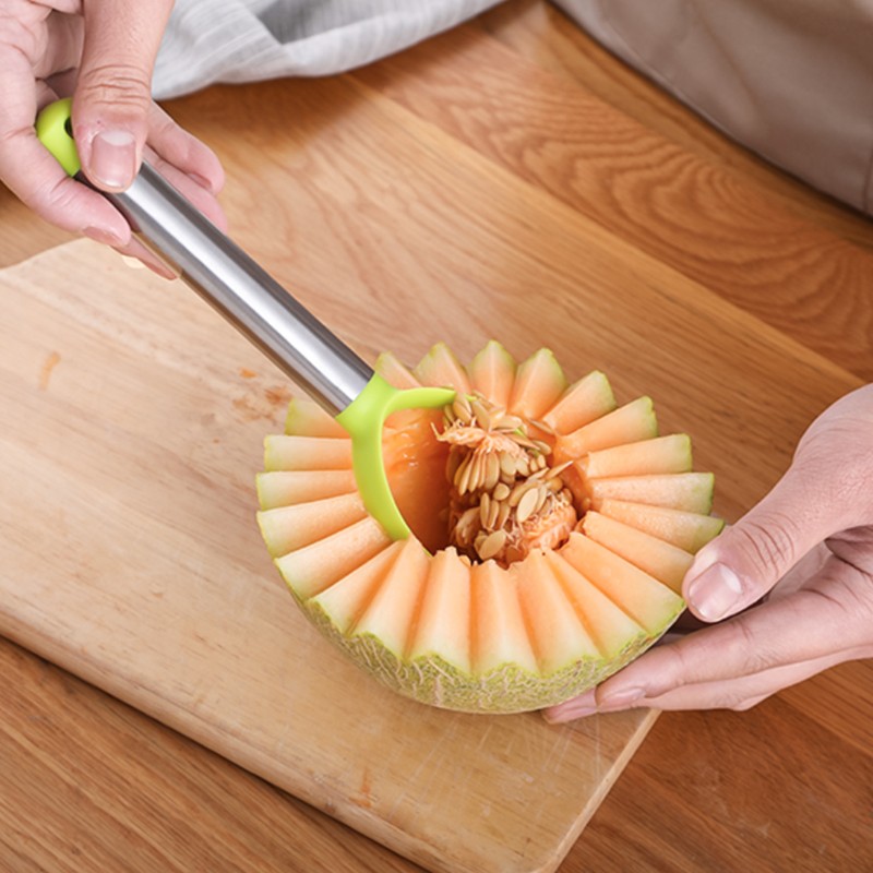 スイカスライサーカービングナイフステンレススチールカッターフルーツスクープスライサーツールハミメロンピタヤスイカキッチンアクセサリー用