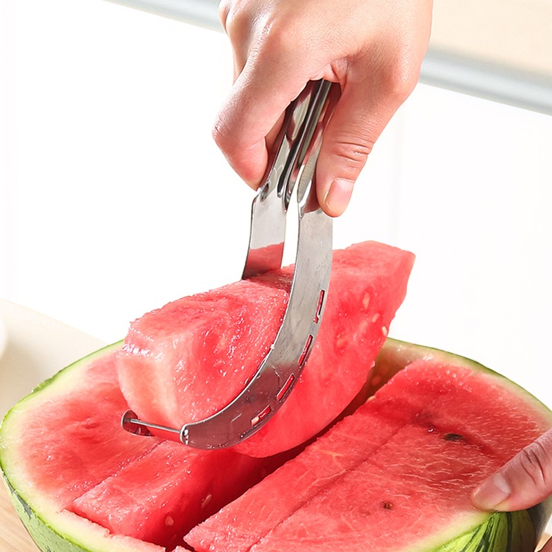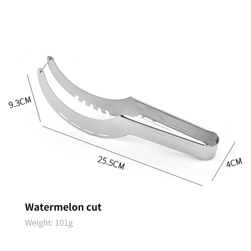 このツーインワン器具は、ナイフの機能とトングの使いやすさを組み合わせて、スイカのスライスを簡単に提供します。