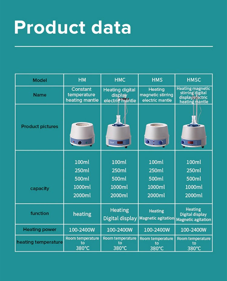 HM | 100ml 250ml 500ml 1000ml 2000ml | Electronic thermoregulation | 100-2400W | Room temperature~300℃ | |