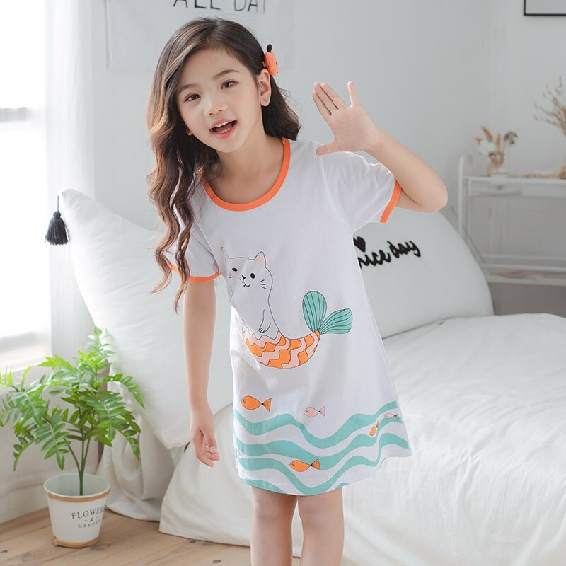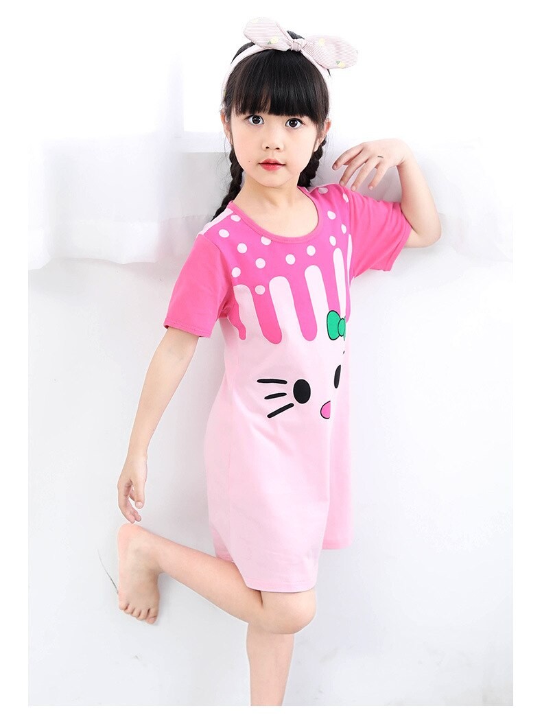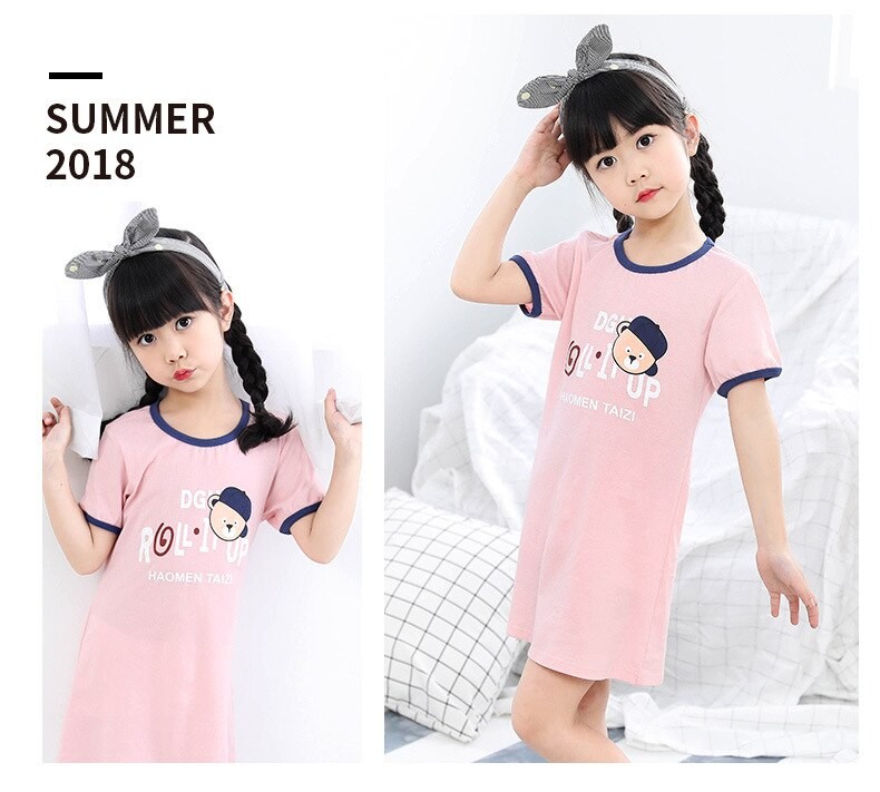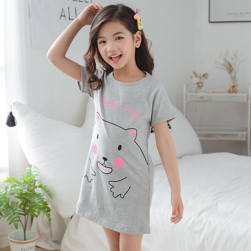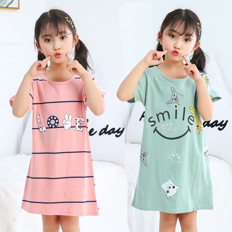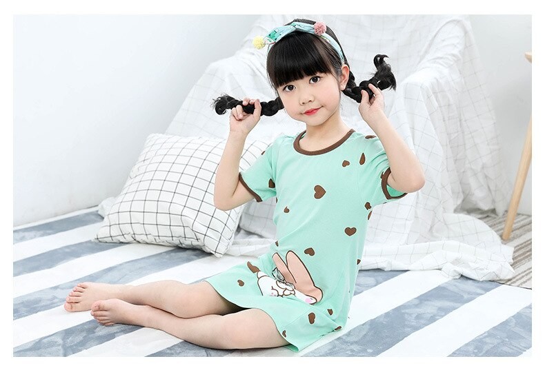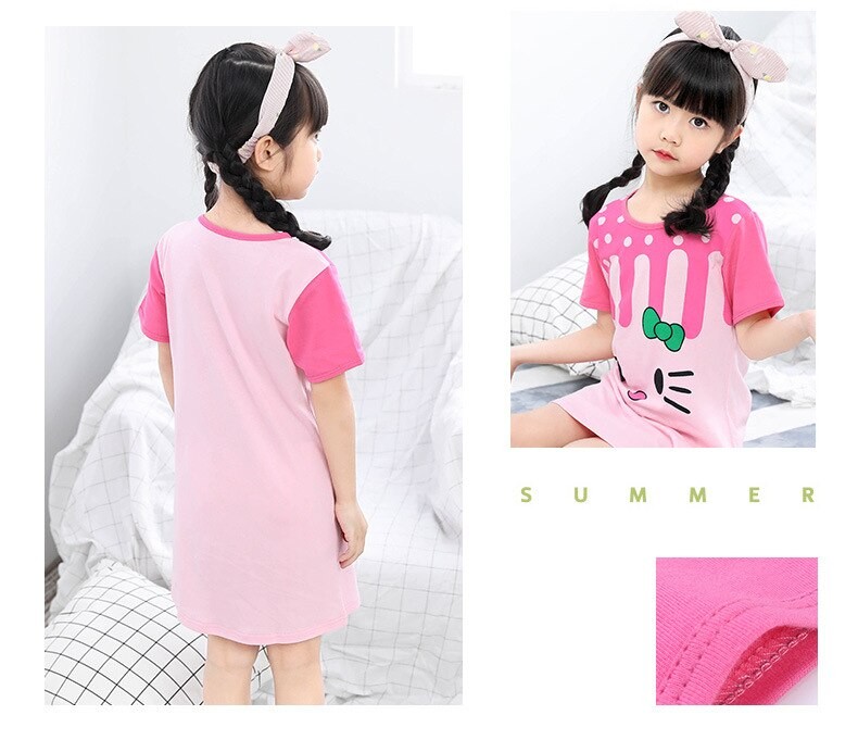 Kids Girls 100% Cotton Nightgown Cartoon Nightdress Girl Sleepwear Summer Short Sleeves Nightwear Children Clothes
