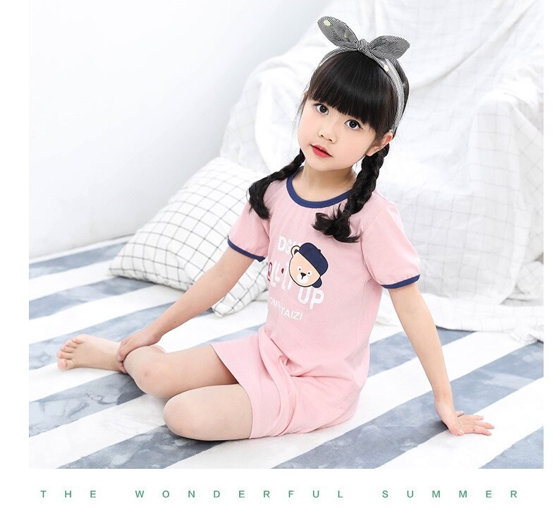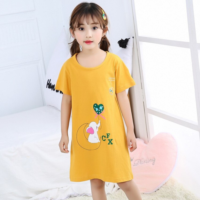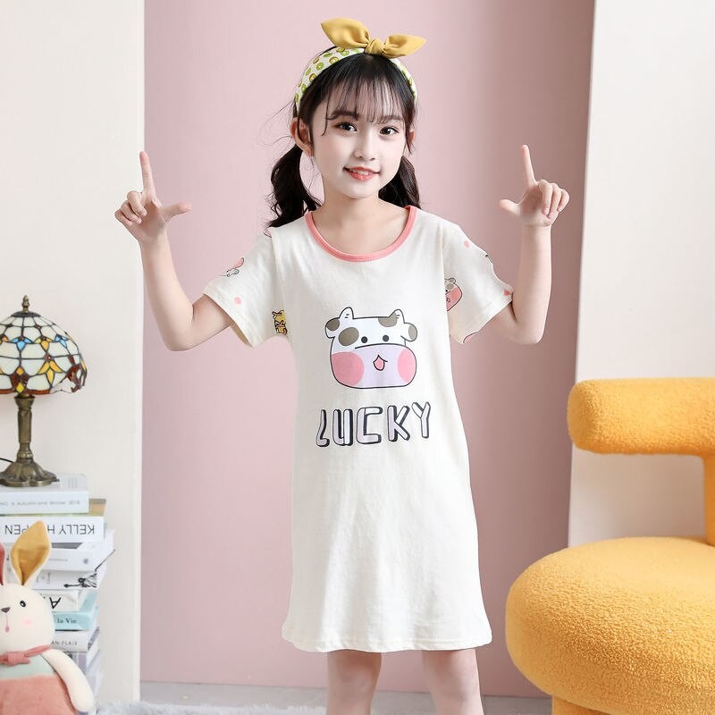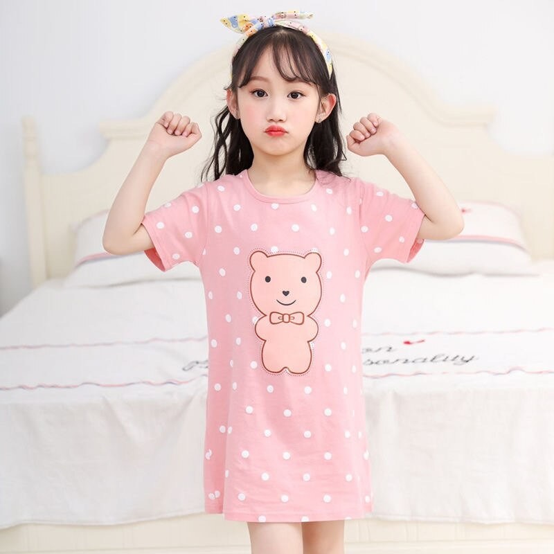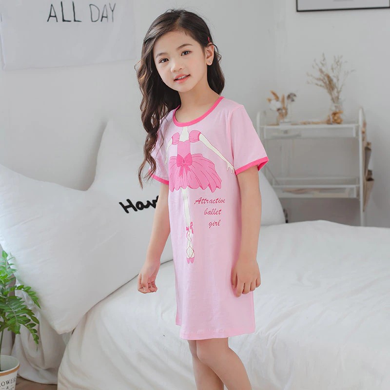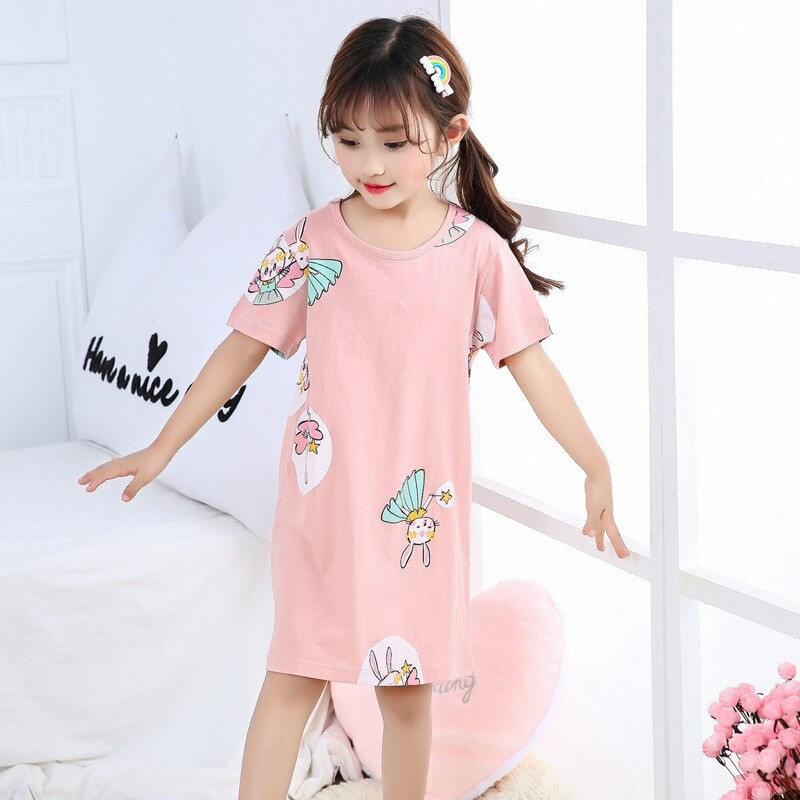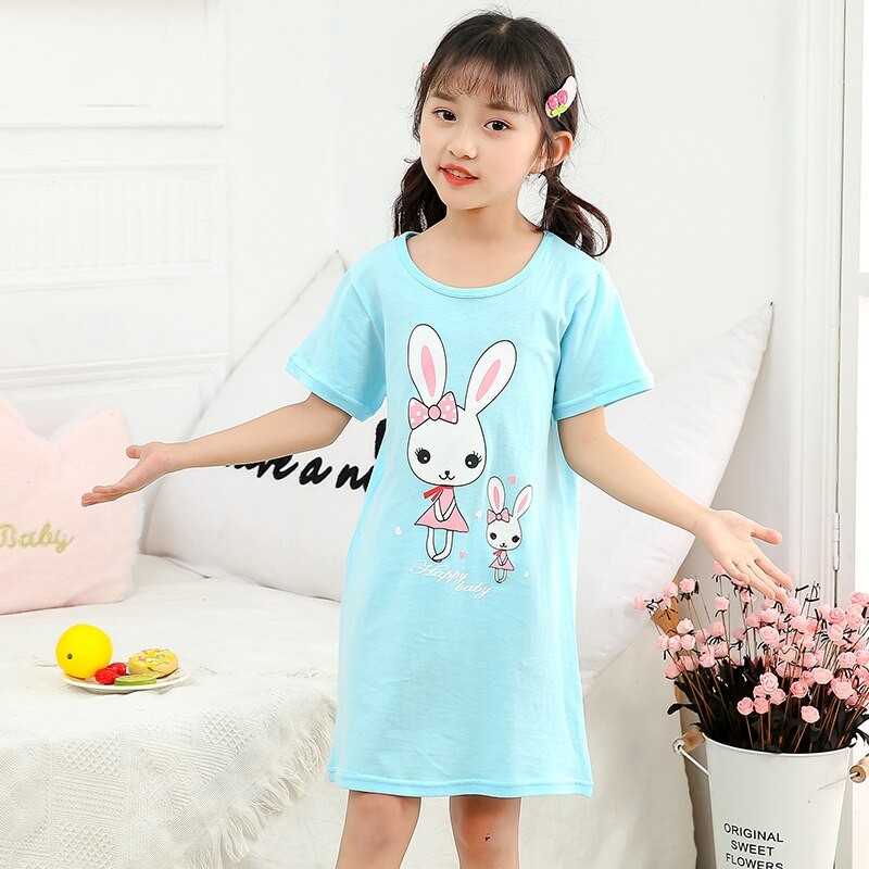 Kids Girls 100% Cotton Nightgown Cartoon Nightdress Girl Sleepwear Summer Short Sleeves Nightwear Children Clothes