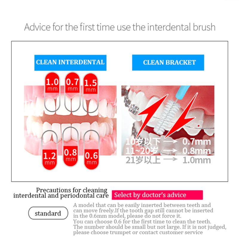 고시: 빗 크기는 치간 공간, 치간 솔 bristles의 크기가 아닙니다 통과를 위해 적당한 직경을 나타납니다.