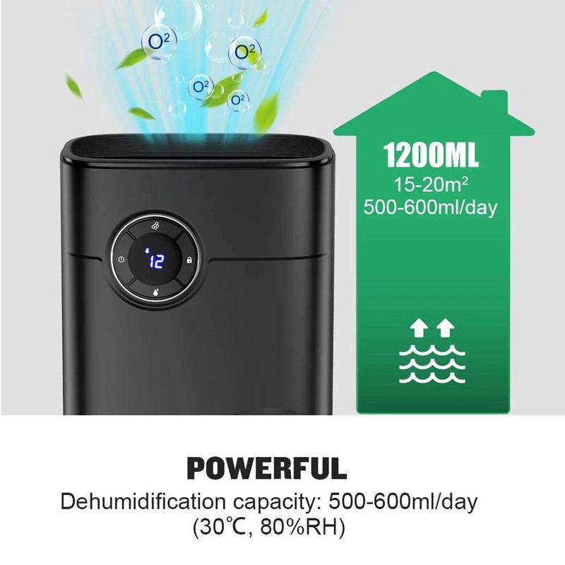 -1200ml 대용량 물 탱크: 물 탱크 용량은 시중의 다른 제습기보다 크습니다.