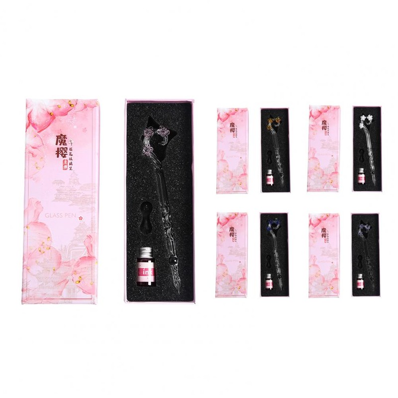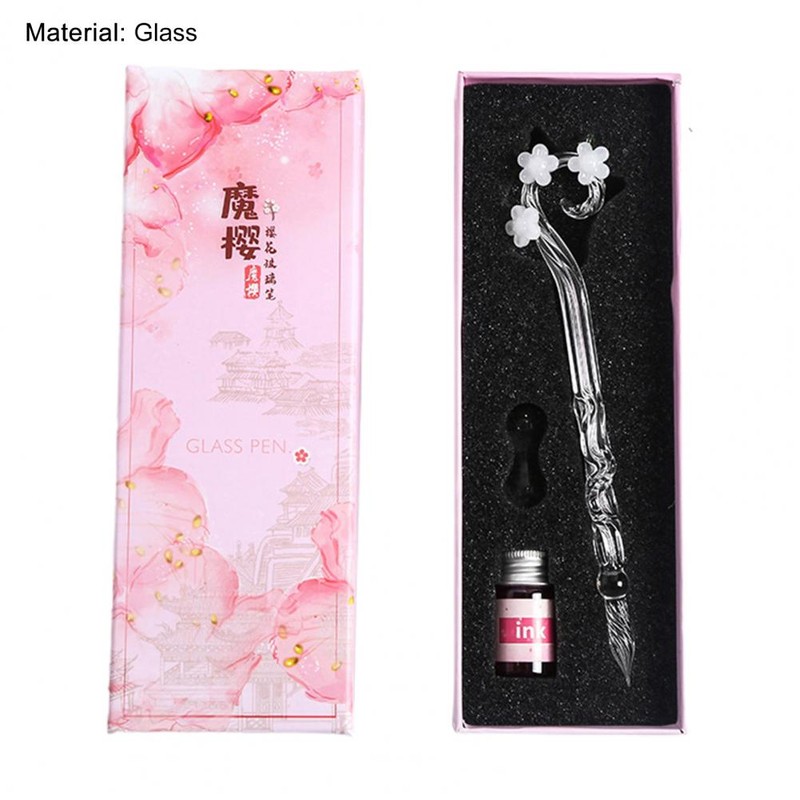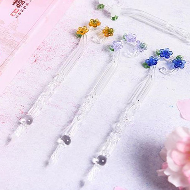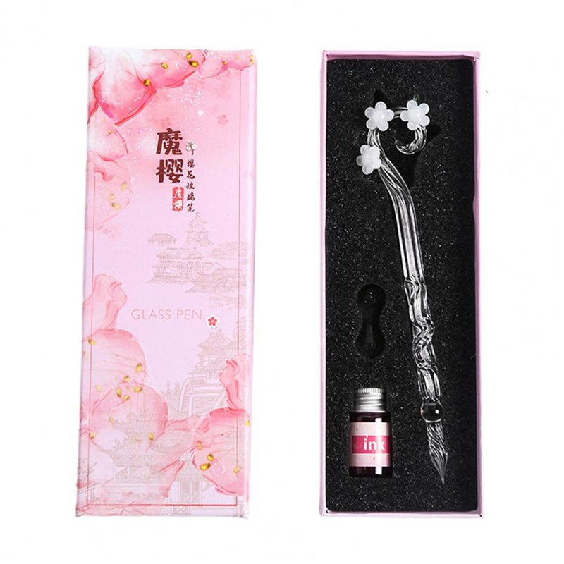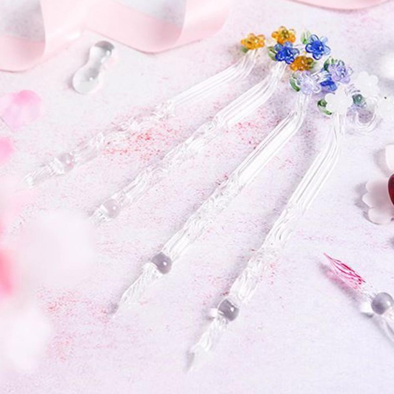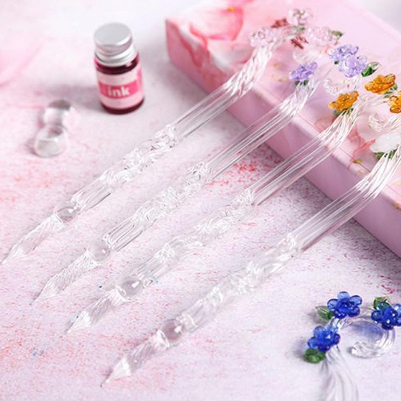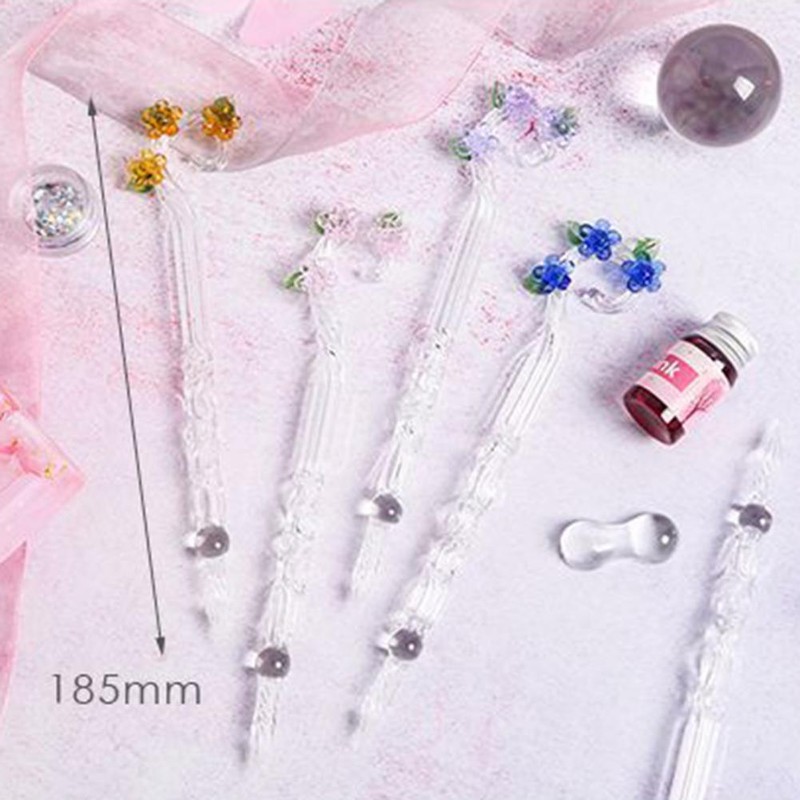 1 세트 쓰기 펜 꽃 디자인 휴대용 유리 크리스탈 쓰기 딥 펜 학생 선물