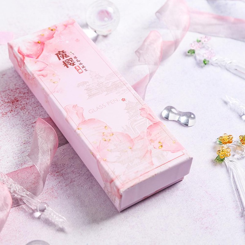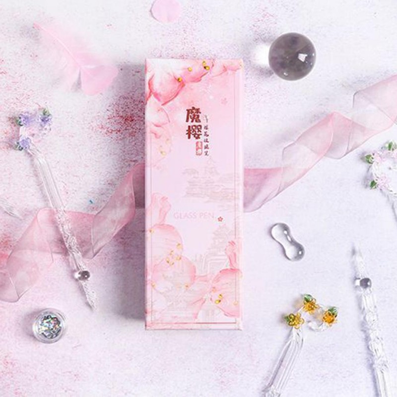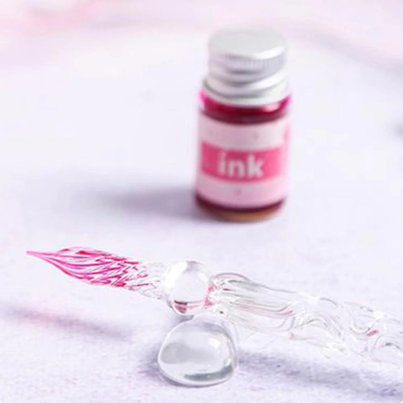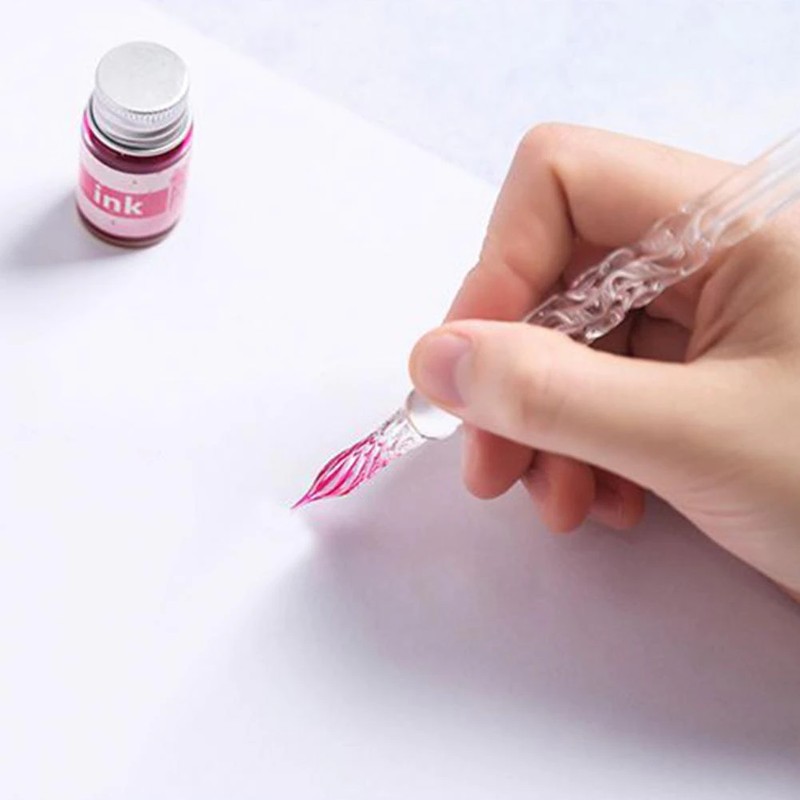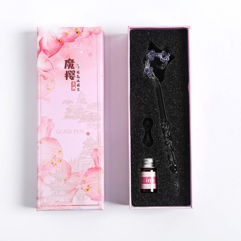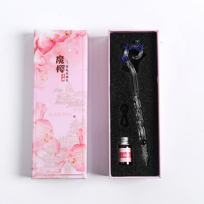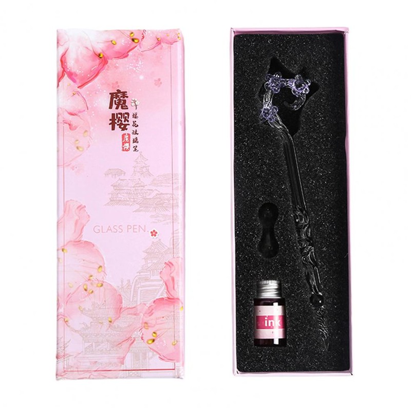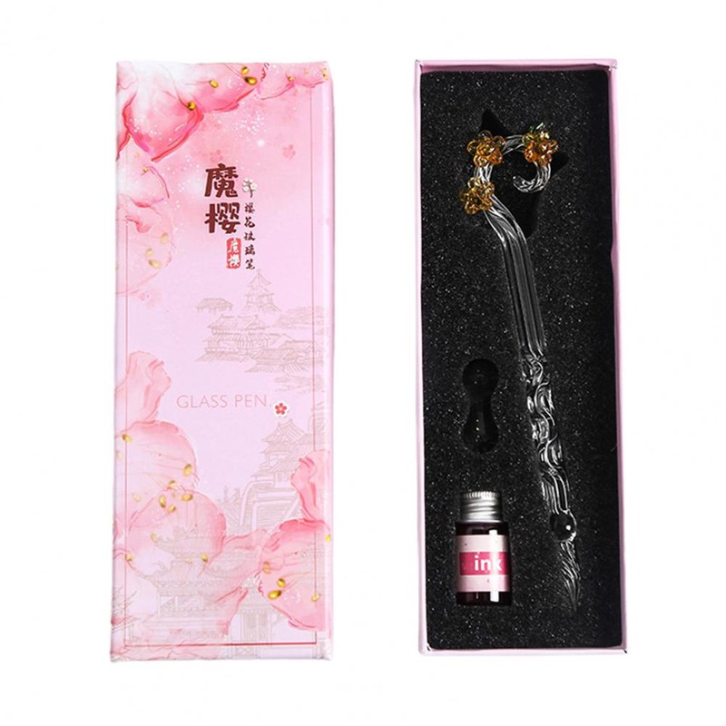 1 세트 쓰기 펜 꽃 디자인 휴대용 유리 크리스탈 쓰기 딥 펜 학생 선물