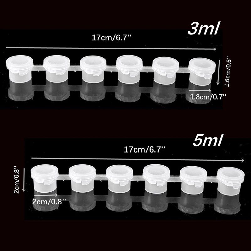 3ml x 6: 하단 직경: 1.8cm/0.7 inch, 캡 직경: 2cm/0.8 inch, 높이: 1.6cm/0.6 inch, 총 길이: 17cm/6.7 inch