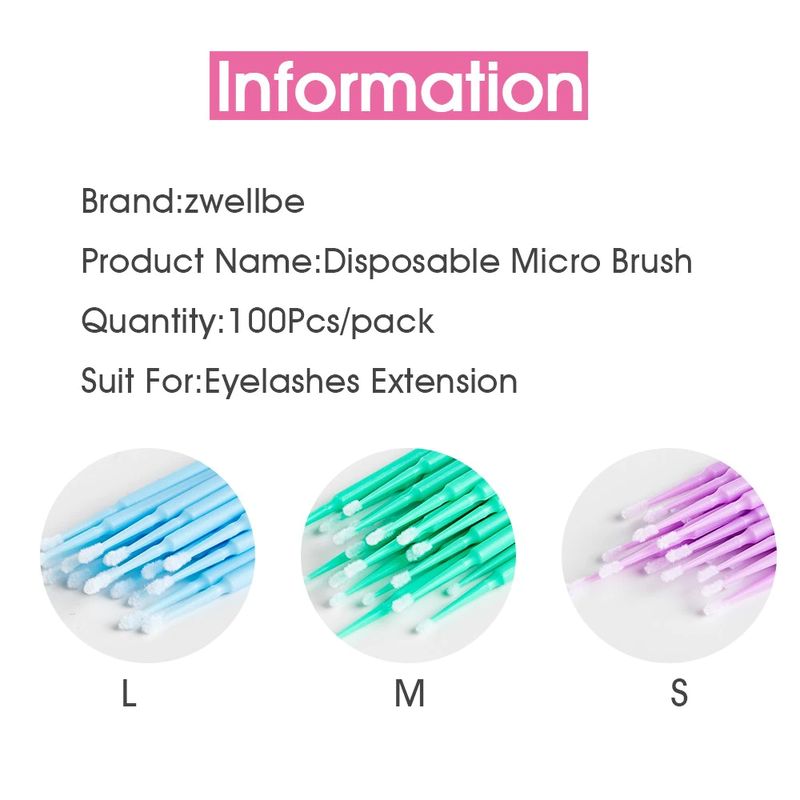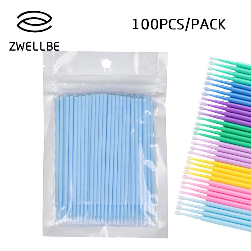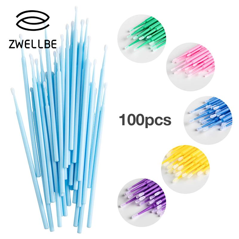 Zwellbe 100 개/갑 일회용 메이크업 브러쉬 면봉 내구성 마이크로 마스카라 브러쉬 속눈썹 연장 개별 속눈썹 제거 도구