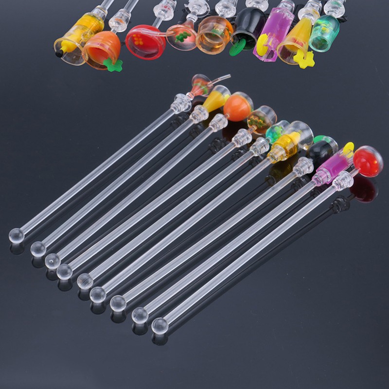 10Pcs swizzle 스틱, 각각 다채로운 미니어처 바 액세서리로 겹쳐져 있습니다.