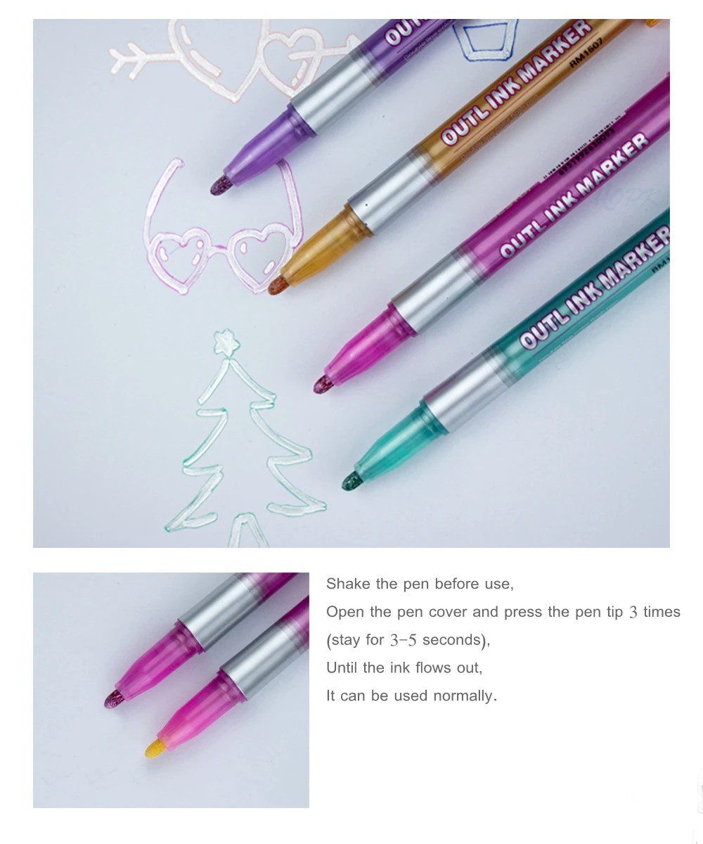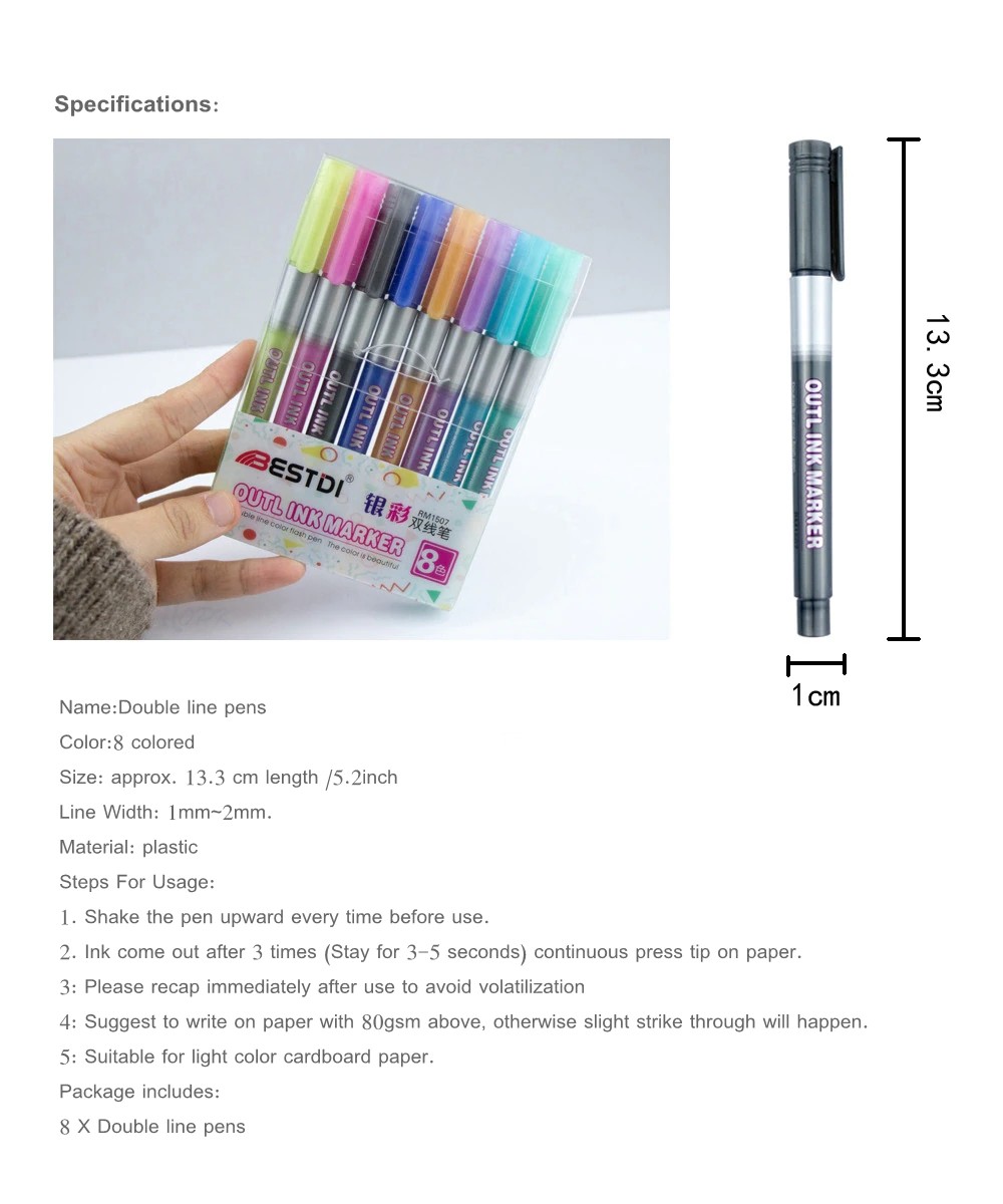 1 세트 x 8pcs 더블 라인 아트 마커 펜