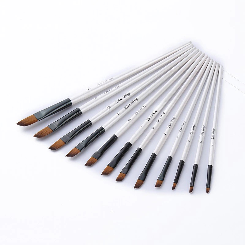 12pcs 나일론 머리 나무 손잡이 수채화 물감 페인트 브러시 펜 Diy 오일 아크릴 페인팅 아트 페인트 브러쉬 용품 학습에 대 한 설정