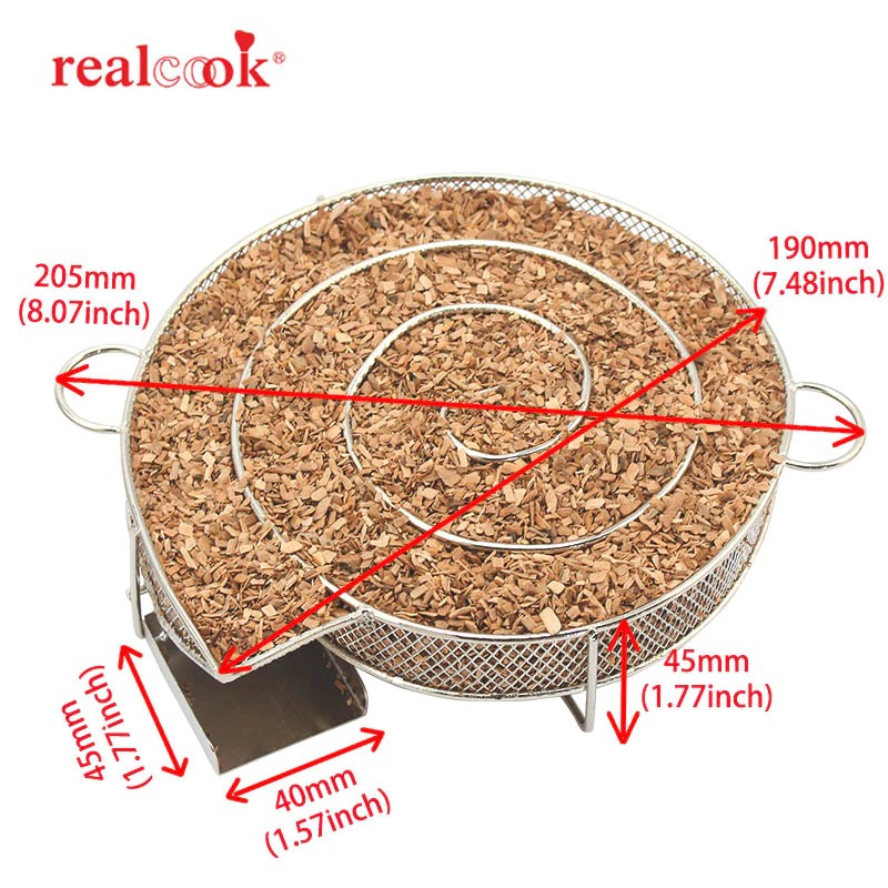 ·다목적 사용: Realcook 바베큐 연기 발생기는 주방, 캠프, 실내에서 실외까지 식당에 적합합니다. 생선, 연어, 베이컨, 계란, 치즈, 버터, 훨씬 더 많은 음식을 담기에 좋습니다.