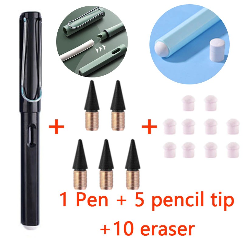 6. 특징: 최신 하이테크 이노베이션 영원한 필기구 펜, 잉크 없음, 더러운 손 없음, 리필이 깨지지 않고, 패셔너블하고 환경 친화적, HB 펜촉, 튼튼하고 내구성, 0.5mm 펜촉, 원활하게 쓰기, 500,000 단어를 쓸 수 있으며, 지속적으로 리필을 변경할 수 있으며, 편리하고 실용적인
