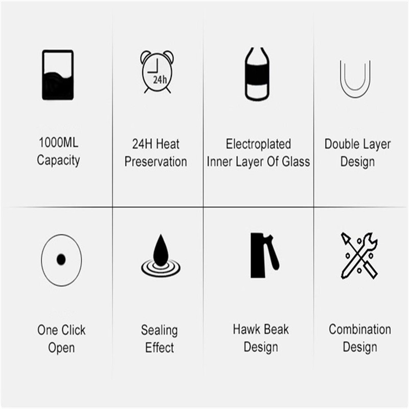 1L 대용량 가정용 단열 주전자, 12-24 시간 동안 열을 유지할 수 있습니다. 그것은 PP 환경 보호 재료 외피 및 유리 전기 도금 내부 탱크, 이중 층 단열 효과가 있습니다. 동시에, 그것은 하나의 키 푸시 형 물 배출구 디자인과 회전 나사 뚜껑 둘 다 큰 나뭇결 손잡이가 장착 된 주전자의 보온 시간을 연장 할 수 있습니다, 외관과 실용성, 고가의 컬러 매칭.