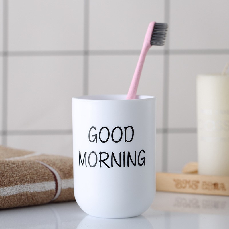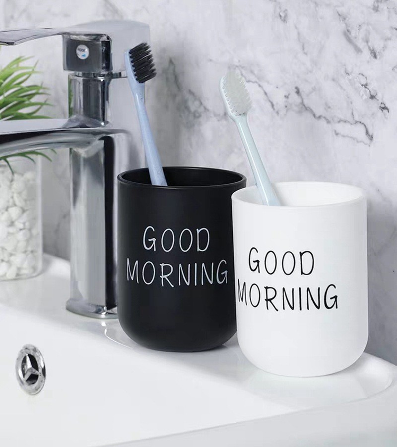 3. 칫솔질 컵은 간단하고 창의적이며, "좋은 아침" 라는 단어로 게으른 이른 오렌지 아침에 좋은 분위기를 가져올 수 있습니다.