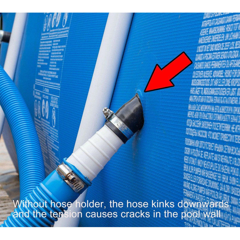 지상 수영장의 배출구 또는 입구가 떨어지고 조인에 압력을 가하는 경우, 이것은 수영장이 호스가 떨어지는 것을 막는 탁월한 지원입니다. 배출구/입구 필터 벽의 압력도 감소합니다.