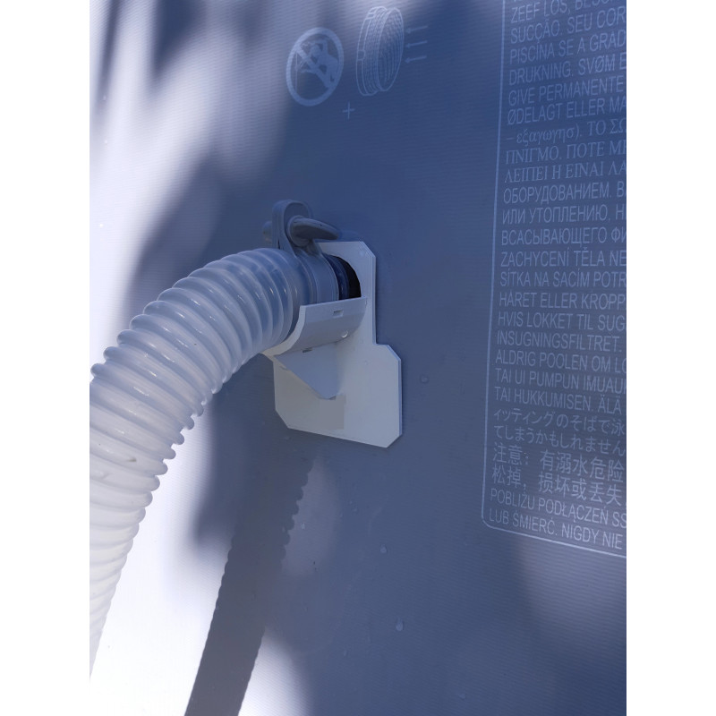 이 홀더는 30 - 38mm 사이의 호스 직경을 위해 설계되었습니다. Intex Bestway 지상 수영장 32mm / 1.25 인치 호스 및 38mm / 1.5in 호스 위에 적합