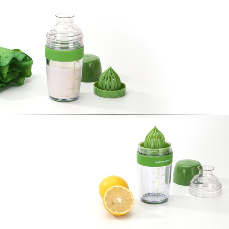 ✅ 2 in 1: 이 샐러드 드레싱 병에는 내부에 감귤류 주스기가 들어 있습니다. 드레싱, 소스 및 매리네이드 제조, 믹싱, 서빙 및 저장에 이상적입니다. 효율적인 혼합을 위한 칵테일 셰이커 모양