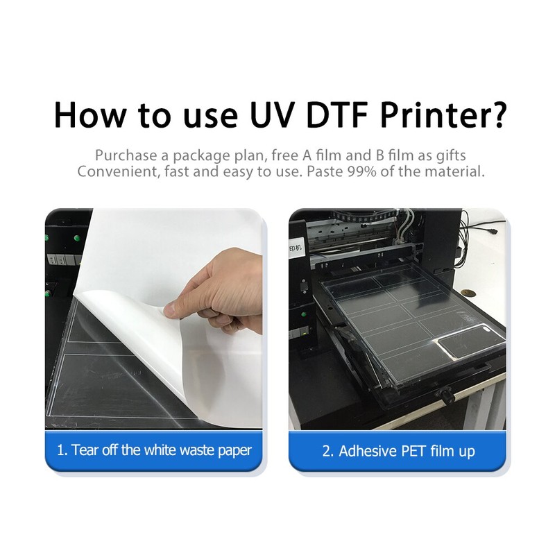 UV DTF 프린터는 UV 프린터로 불리는 UV 램프가있는 평판 형 프린터입니다. 자체 접착 PET 필름 (필름) 에 인쇄하고 라미네이팅 기계를 사용하여 패턴을 B 필름으로 옮기고 물체에 붙여 넣습니다. 아주 새로운 이동 스티커 방법, 아주 편리하고 빠른.