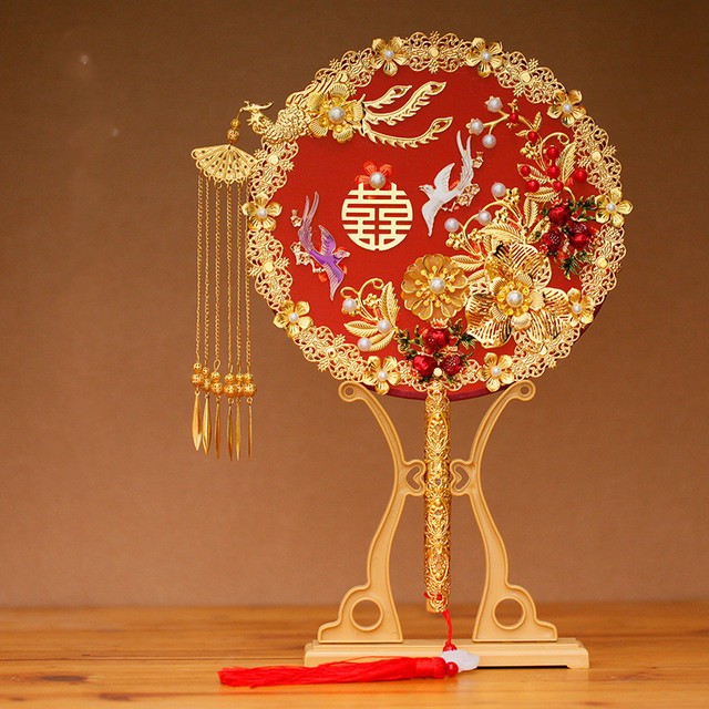 32*22cm 홈 장식 팬 빈티지 중국 결혼식 장식 팬 결혼식 신부 사진 장식품