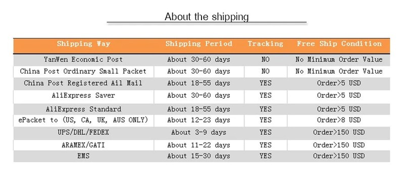 1. 우리는 48 시간 안에 모든 순서를 발송할 것입니다, 우리 상점에있는 모든 상품은 포스트 항공 우편으로 자유로운 선박입니다.