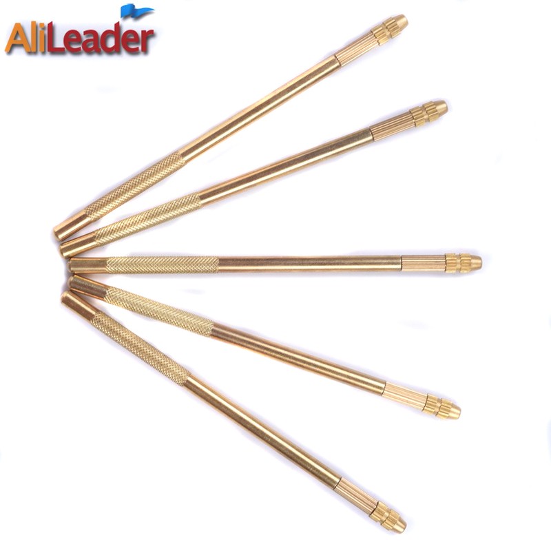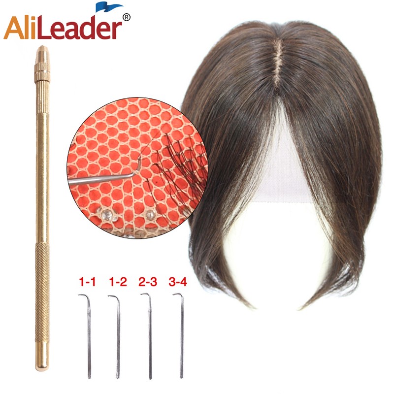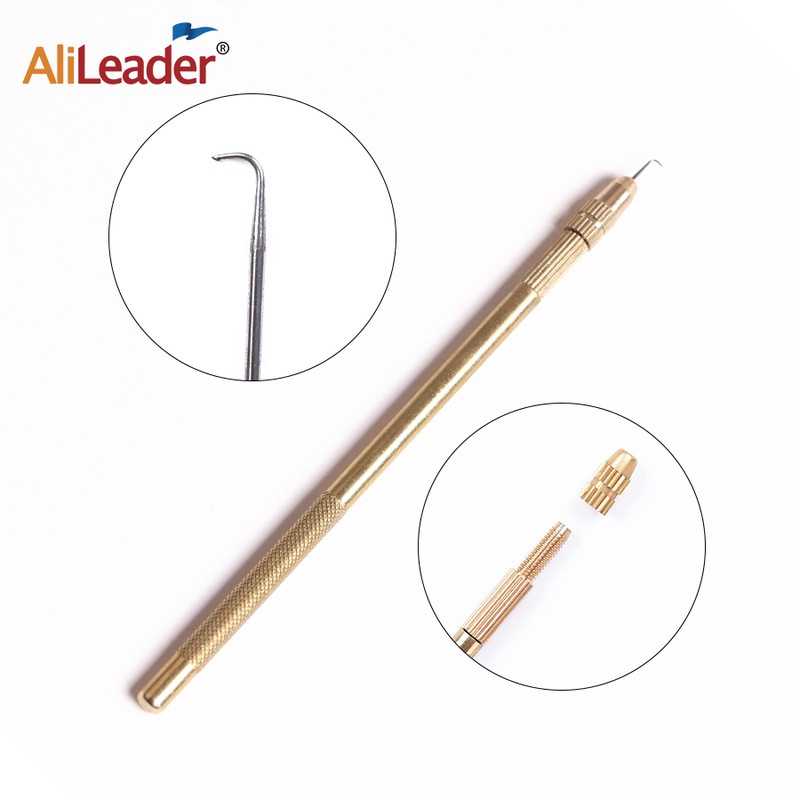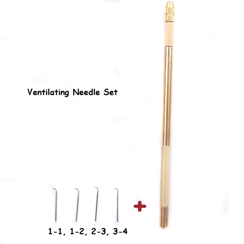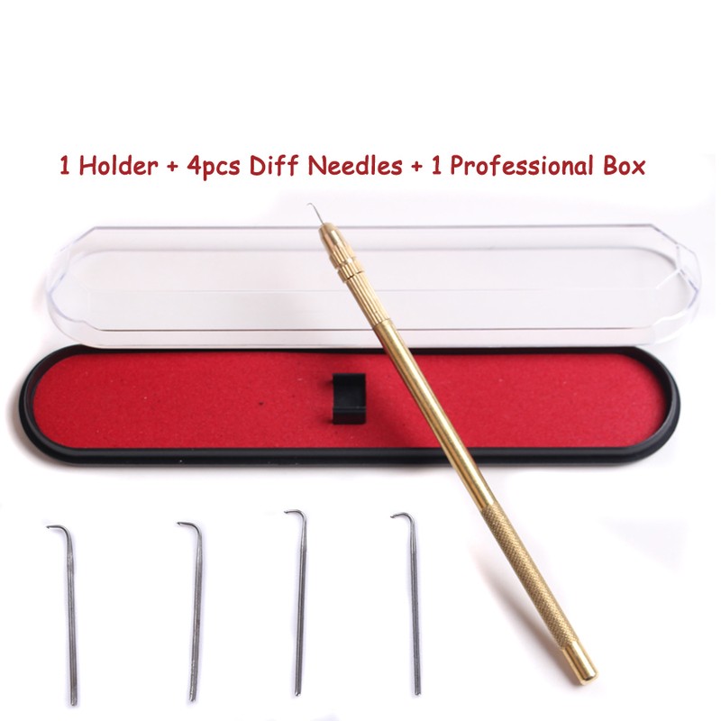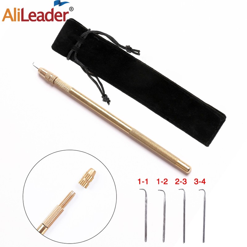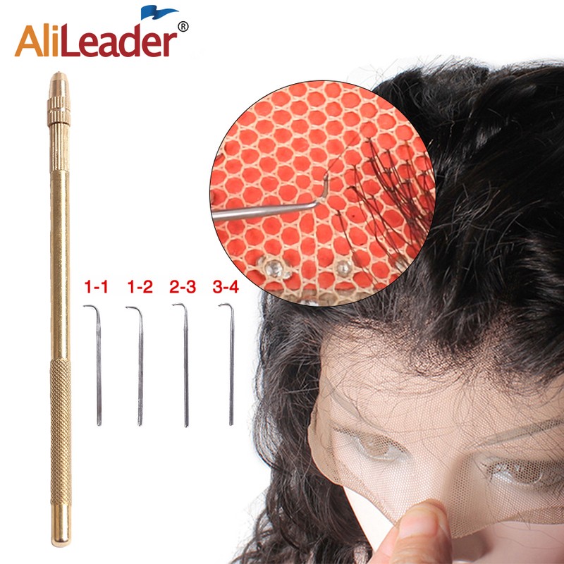 Alileader-전문가용 레이스 가발 제작 바늘, 황금 환기 바늘, 가발용, 고품질 구리 손잡이, 4 개 바늘 포함