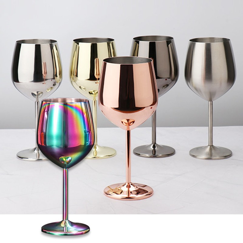 500ml 304 스테인레스 스틸 단일 레이어 잔 레드 와인 유리 다채로운 대용량 드럼 모양의 방울 와인 글라스