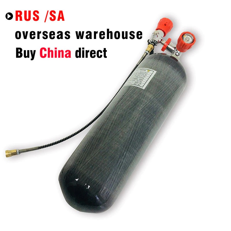 Acecare 6.8L 탄소 섬유 공기 탱크 4500psi HPA Paintball Airsoft 탱크 공기 밸브 및 필링 스테이션이있는 고압 실린더