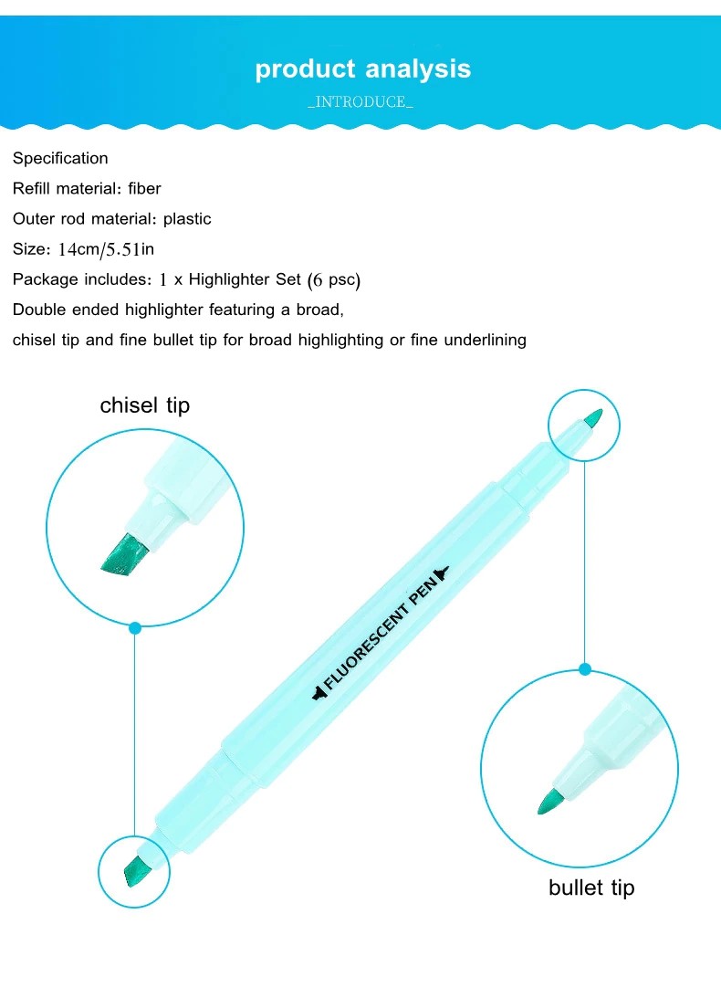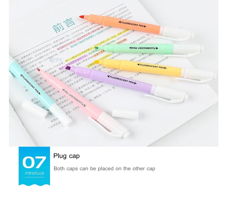 -형광펜은 넓고 정밀한 팁으로 양면 처리됩니다.