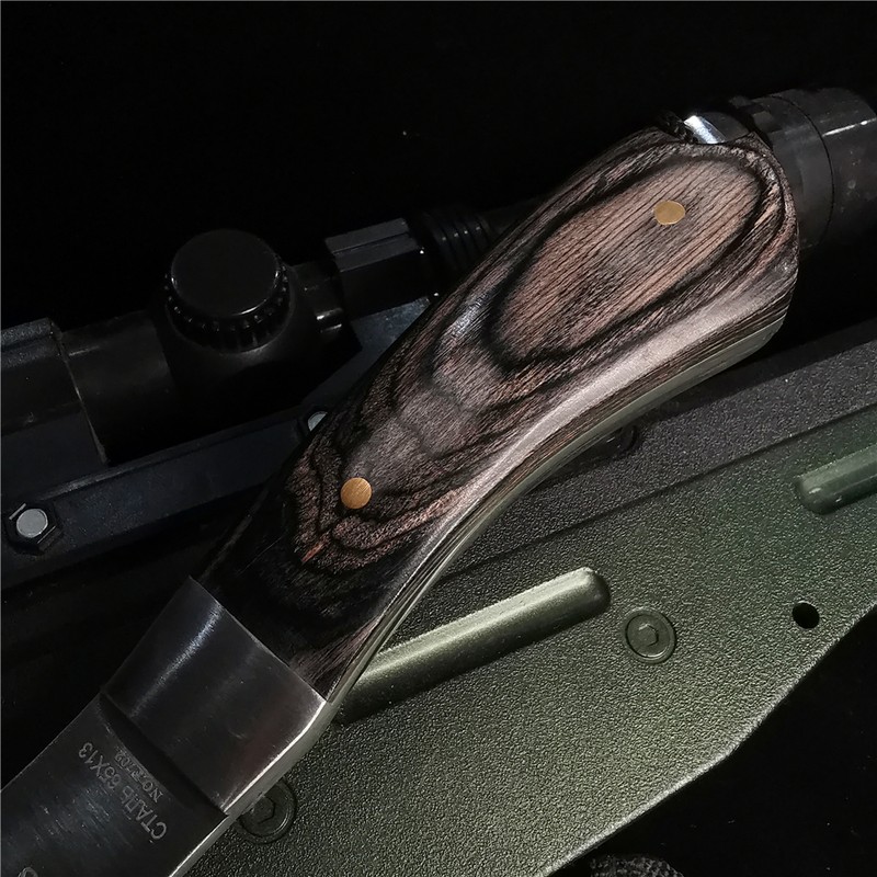 당신의 손에 견고하게 느끼는 좋은 무게를 가진 중대한 질 칼.