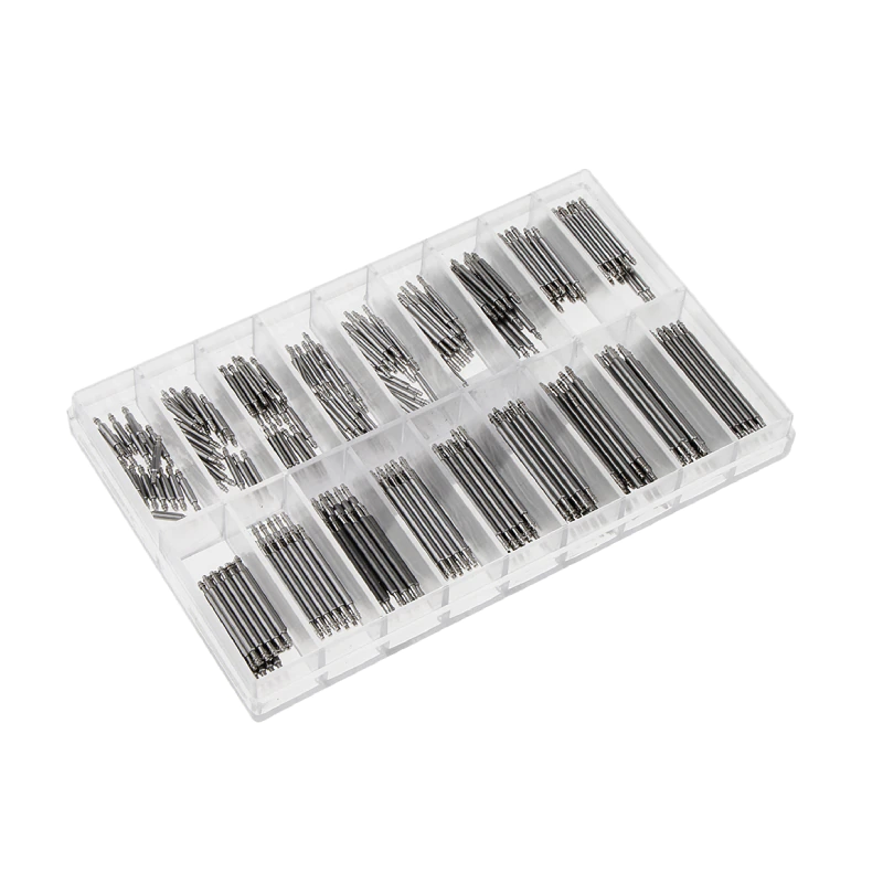 그 시계 연결 핀은 분리되고 접근하게 쉬운 18 다른 크기를 지키기를 위한 투명한 플라스틱 상자에서 지켜집니다;