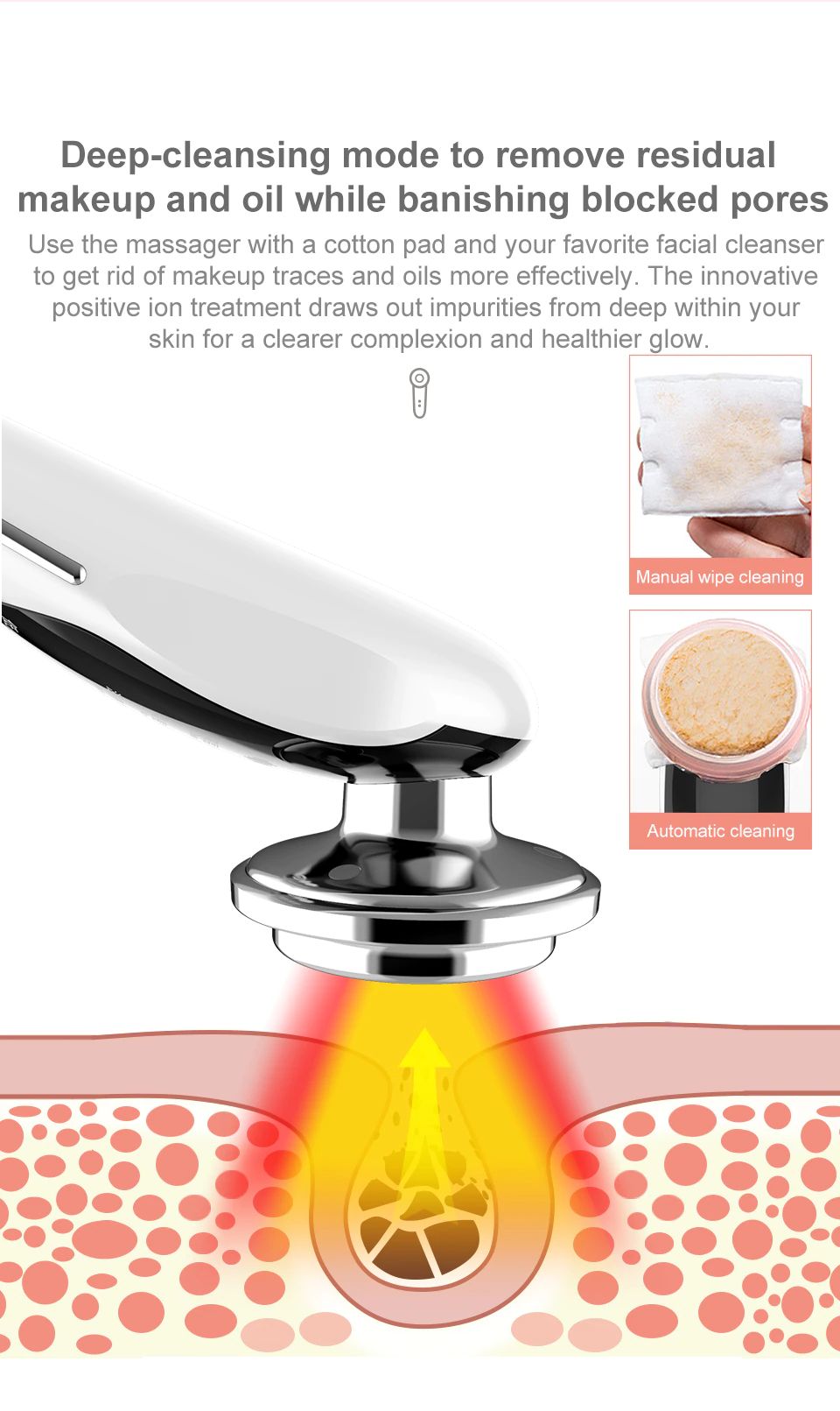[긍정적이 고 부정적인 이온] 긍정적이 고 부정적인 이온 사이의 상호 매력의 원리를 사용 하 여 깊은 구멍에 있는 먼지는 생물학적 전류에 의해 씻어 완전히 청소. 화장용 성분은 iontophoresis를 통해 피부의 더 낮은 층에 관통합니다.